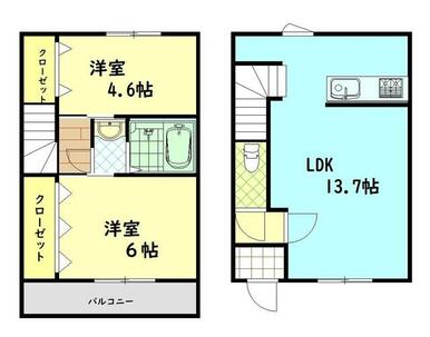 2LDK(LDK13.7 洋6 洋4.6) |